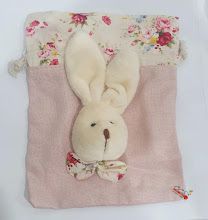 Bolsinha de Algodão com Rosto de Coelho de Pelúcia Aplicado e Borda Floral  - Páscoa Cromus - CCS Decorações e Embalagens