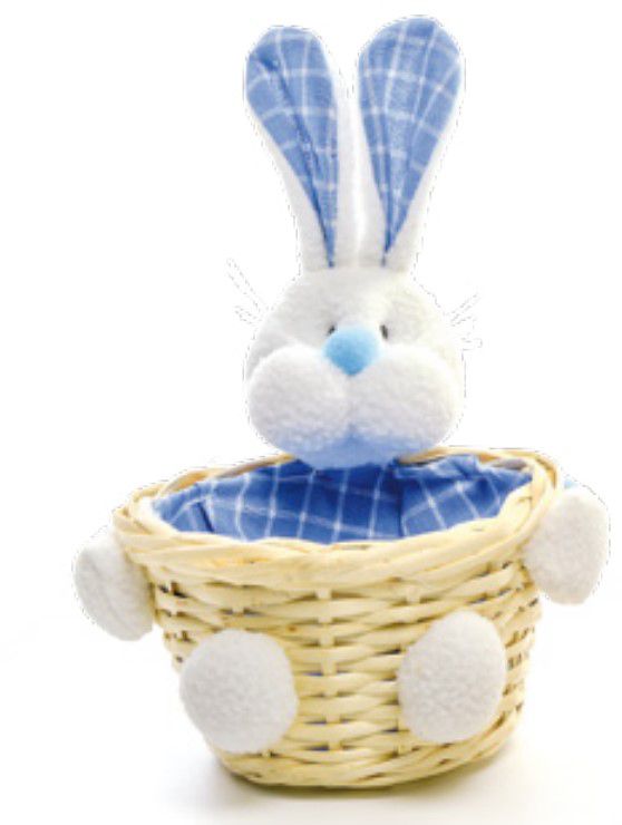 Cesta de Páscoa de Palha com Aplique de Coelho de Pelúcia - Cromus - CCS Decorações e Embalagens