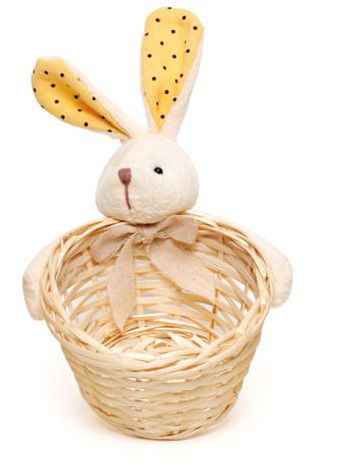 1 Cesta de Palha com Aplique de Coelho de Pelúcia.