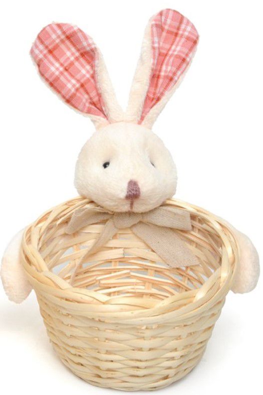 1 Cesta de Palha com Aplique de Coelho de Pelúcia.