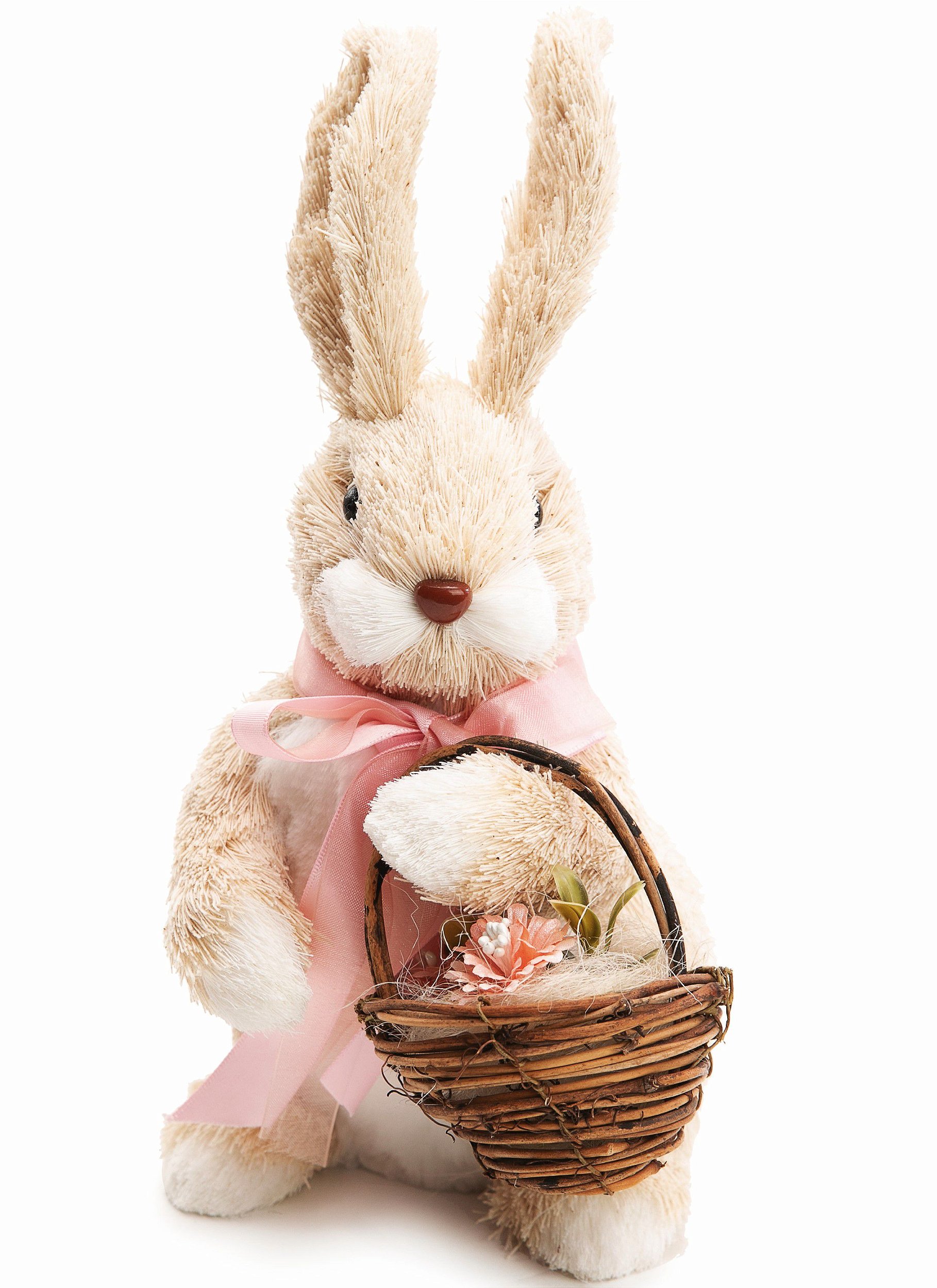 Coelho de Palha Italiana em Pé com Cesta de Flores - Coleção Brisa - Cromus - CCS Decorações e Embalagens
