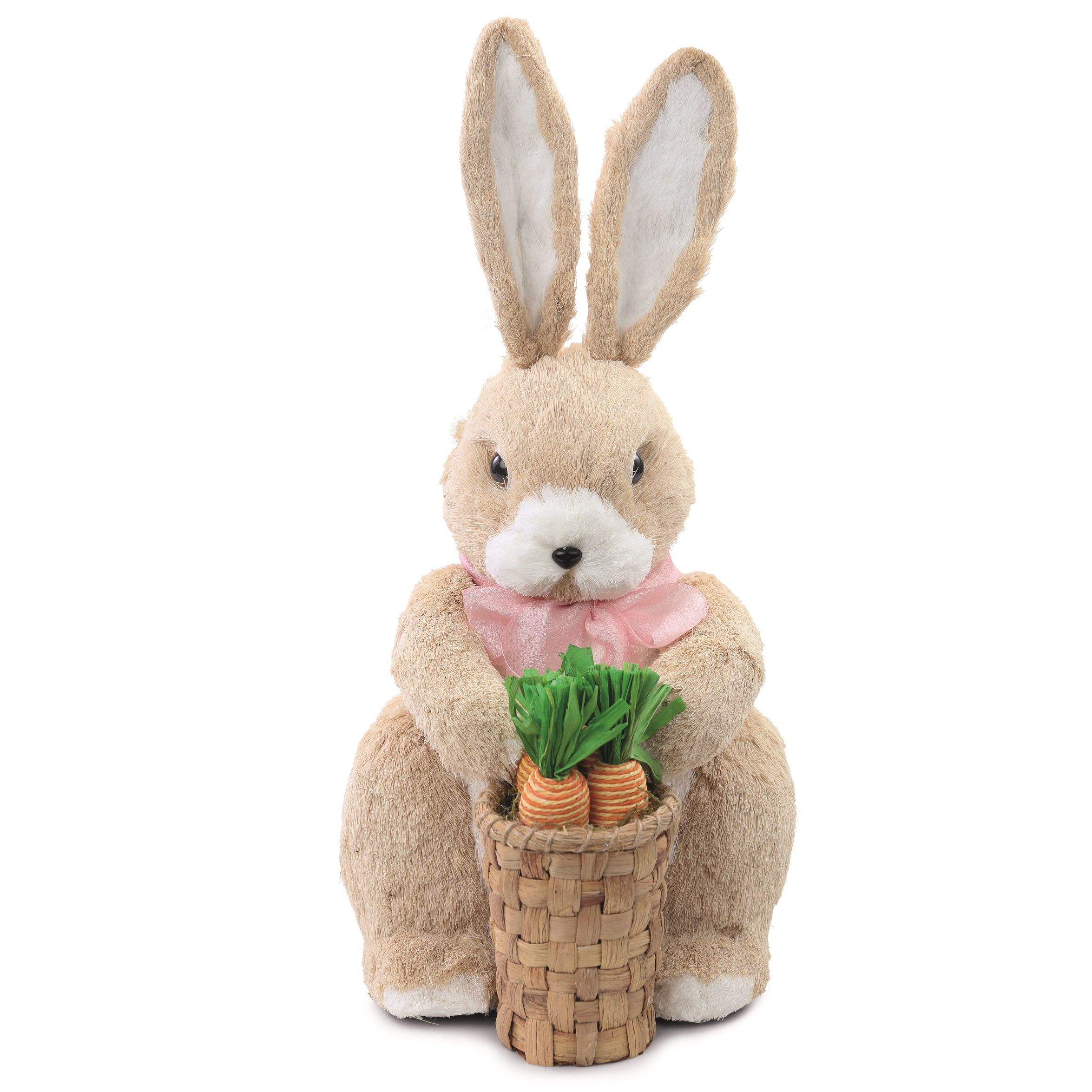 Coelha de Palha Italiana Sentado com Cesto de Cenouras - Coleção Banoffee - Cromus - CCS Decorações e Embalagens