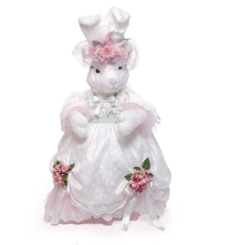 Coelha Decorativa de Páscoa de Pelúcia Rigida com Vestido e Flores na Cabeça - Cromus - CCS Decorações e Embalagens