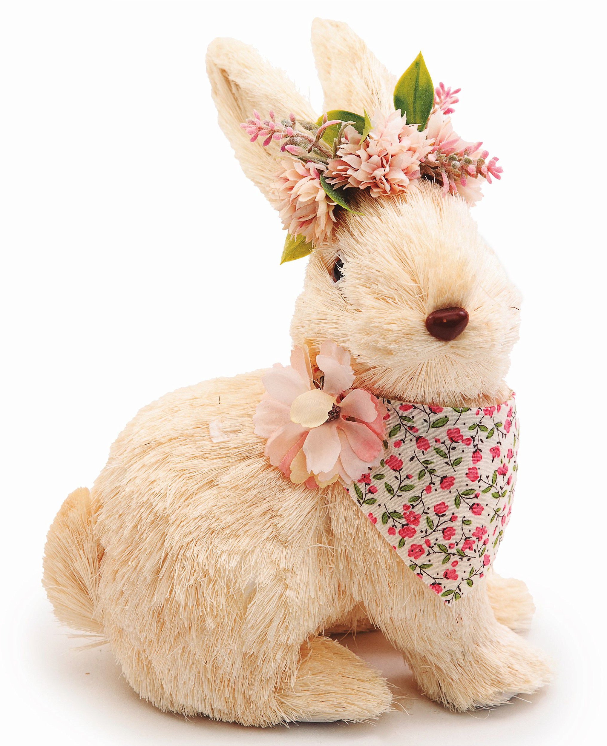 Coelha de Palha Creme em Sentada com Flores na Cabeça - Coleção Green Gables - Cromus - CCS Decorações e Embalagens