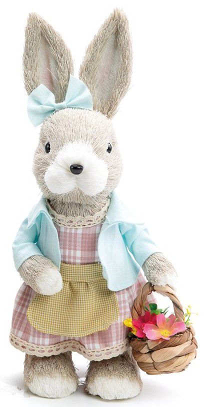 Coelha de Palha Italiana em Pé com Cesta de Flores 32cm - Páscoa Cromus - CCS Decorações e Embalagens