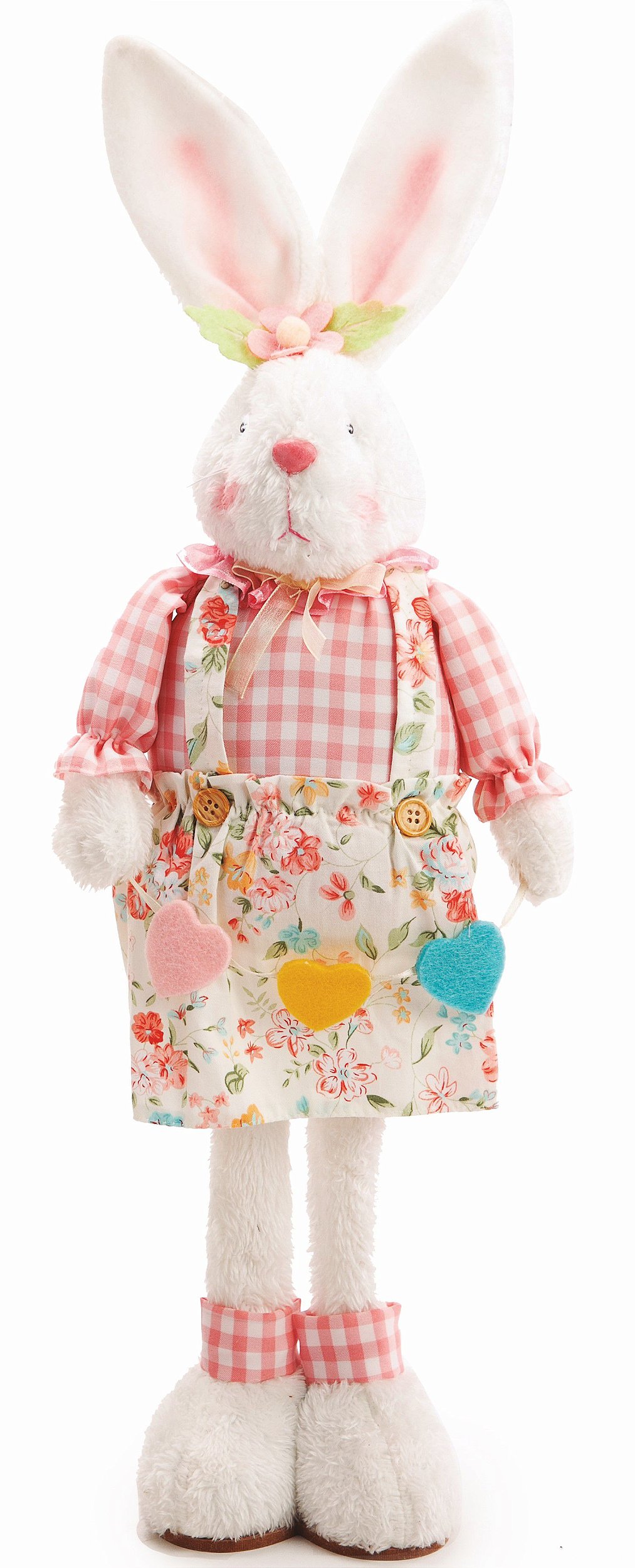 Coelha Decorativa de Pé Vestido Florido e com Cordão de Coração na Mão - Cromus - CCS Decorações e Embalagens