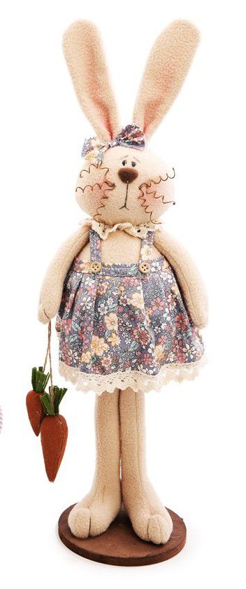 Coelha Decorativa em Pé com Vestido Florido, Segurando Maço de Cenouras - Cromus - CCS Decorações e Embalagens