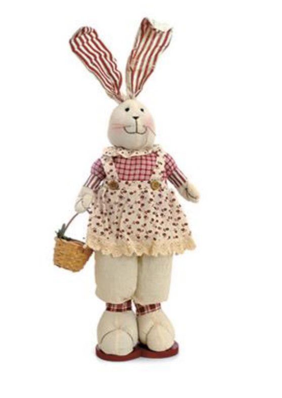 Coelha de Tecido em Pé com Vestido Florido Vermelho Segurando Cesta - Cromus - CCS Decorações e Embalagens