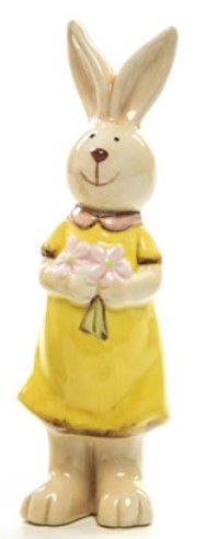 Coelha Decorativo de Ceramica em Pé com Flores Na Mão - Coleção Primavera - Páscoa Cromus