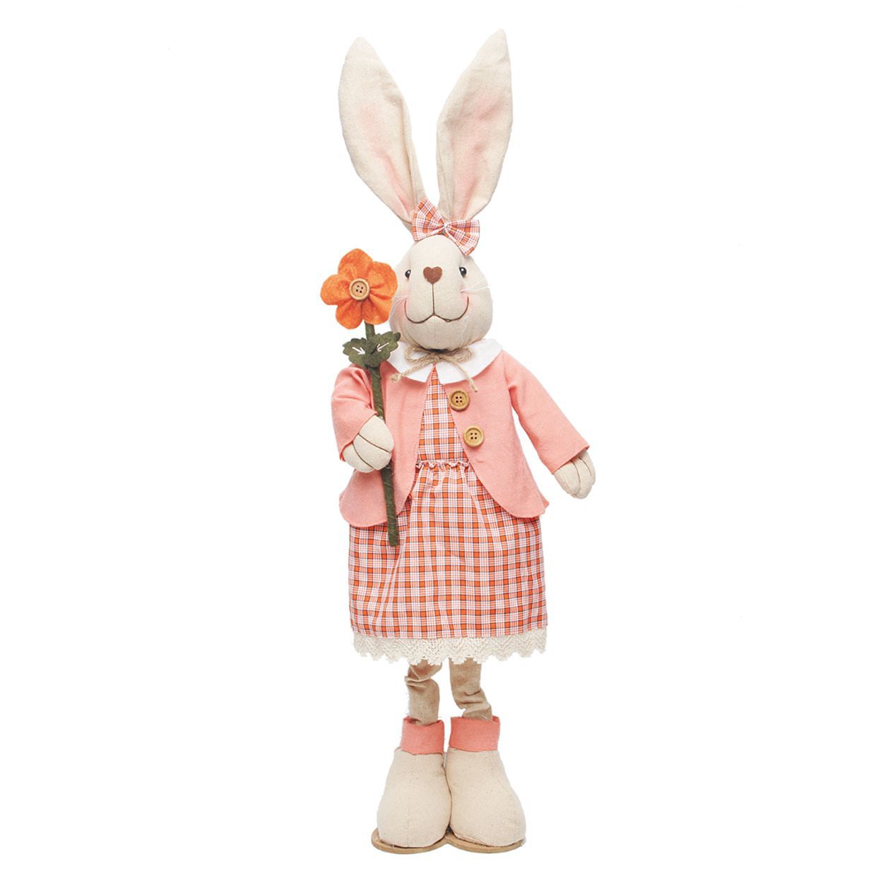 Coelha Grande em Pé Segurando Flor Laranja, com Vestido - Páscoa Cromus - CCS Decorações e Embalagens