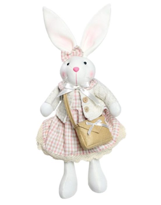 Coelha Sentada com Vestido Xadrez Rosa e Branco e Maleta Marrom 45cm - Páscoa Cromus - CCS Decorações e Embalagens