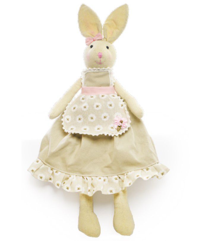 Coelha de Tecido Sentada com Vestido Nude - Cromus - CCS Decorações e Embalagens