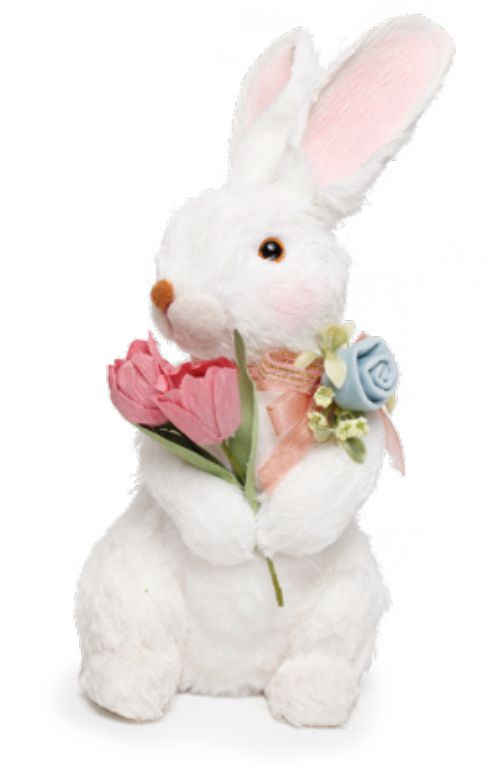 Coelho Branco de Palha Sentado com Flores - Páscoa Cromus - CCS Decorações e Embalagens