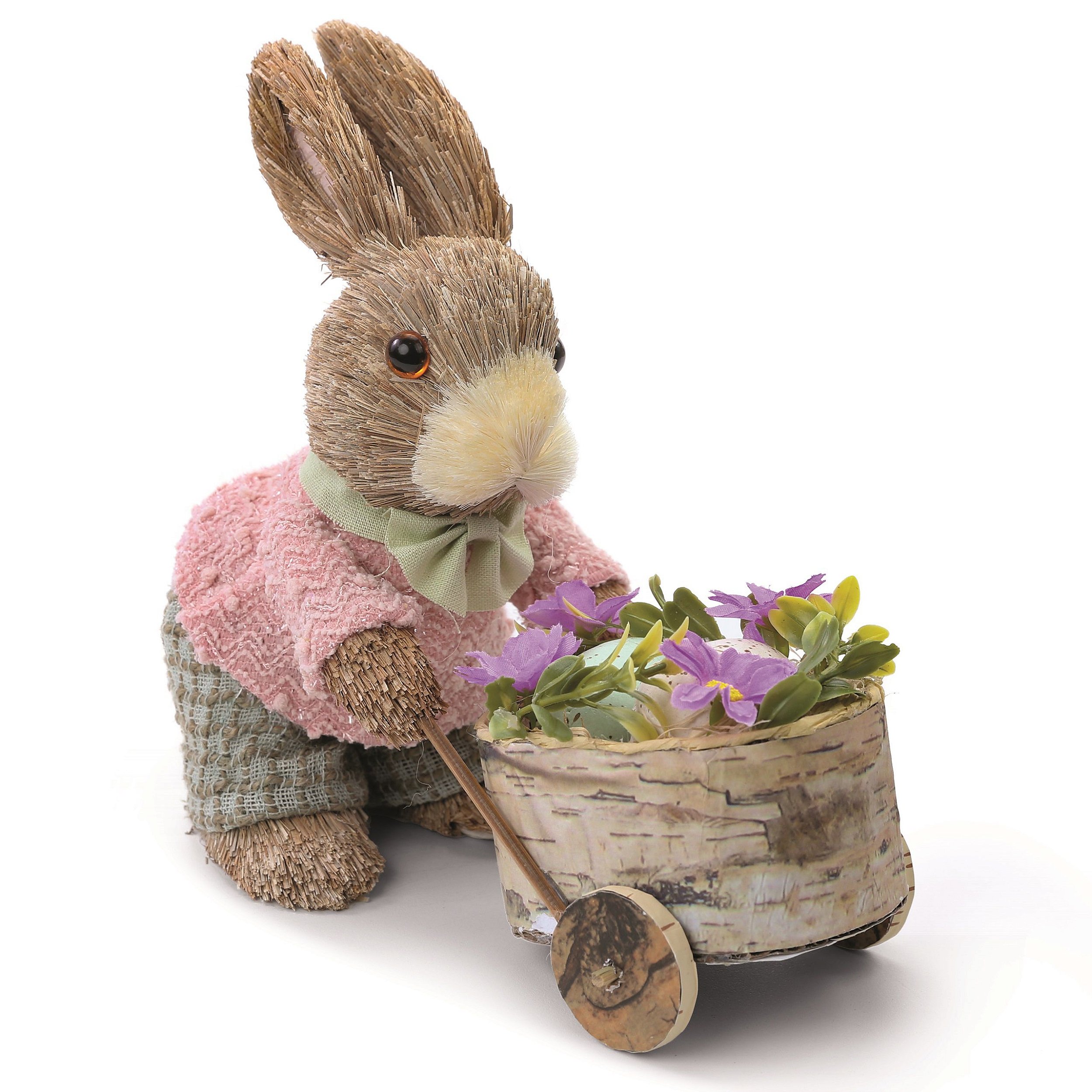 Coelho de Palha em Pé Empurrando Carriola de Flores - Coleção Palmier - Cromus - CCS Decorações e Embalagens