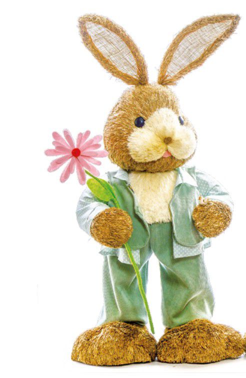 Coelho de Palha em Pé com Roupa Verde Segurando Flor 90cm - Cromus - CCS Decorações e Embalagens