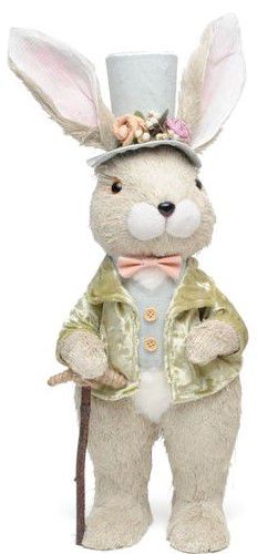 Coelho em Pé com de Palha Italiana com Paletó Verde e Chapéu - Páscoa Cromus - CCS Decorações e Embalagens