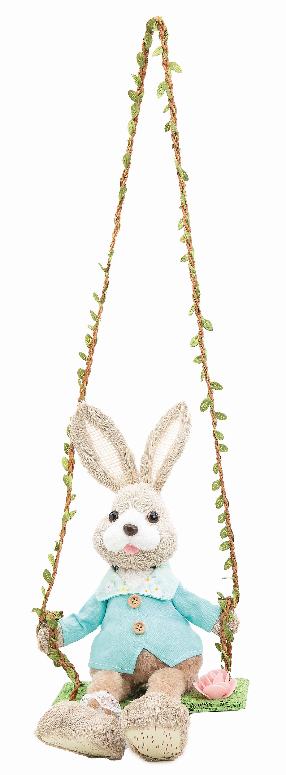 Coelho de Palha Italiana Sentado no Balanço - Coleção St Louis - Cromus - CCS Decorações e Embalagens