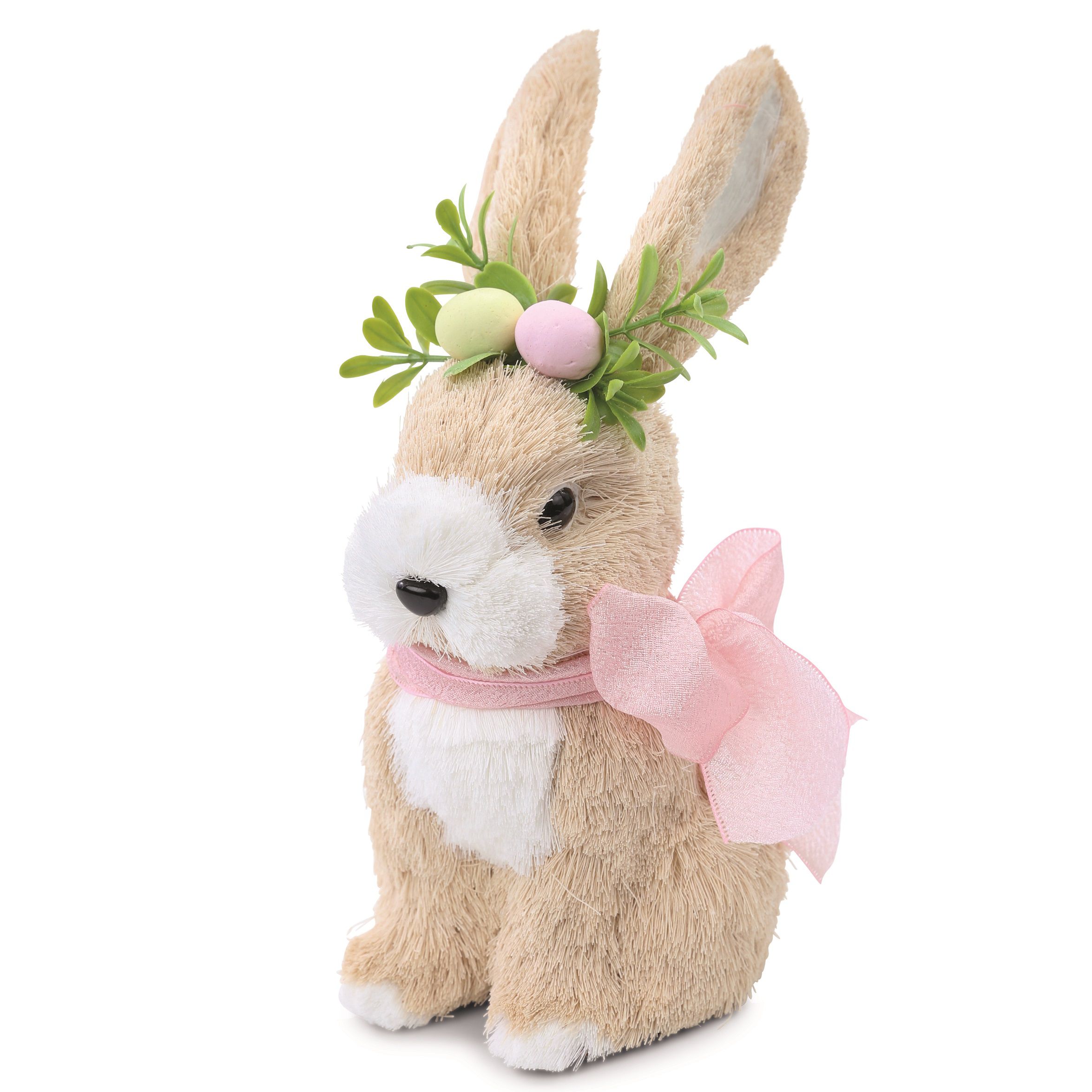Coelho de Palha Italiana Sentado com Laço no Pescoço e Flores na Cabeça - Coleção Banoffee - Cromus - CCS Decorações e Embalagens