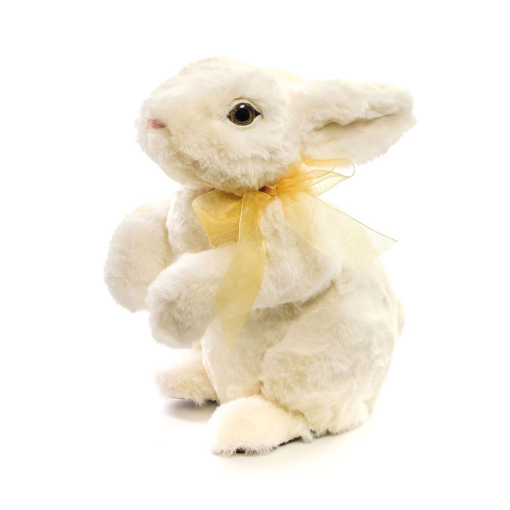 Coelho de Pelúcia em Pé com Laço no Pescoço Amarelo - Páscoa Cromus - CCS Decorações e Embalagens