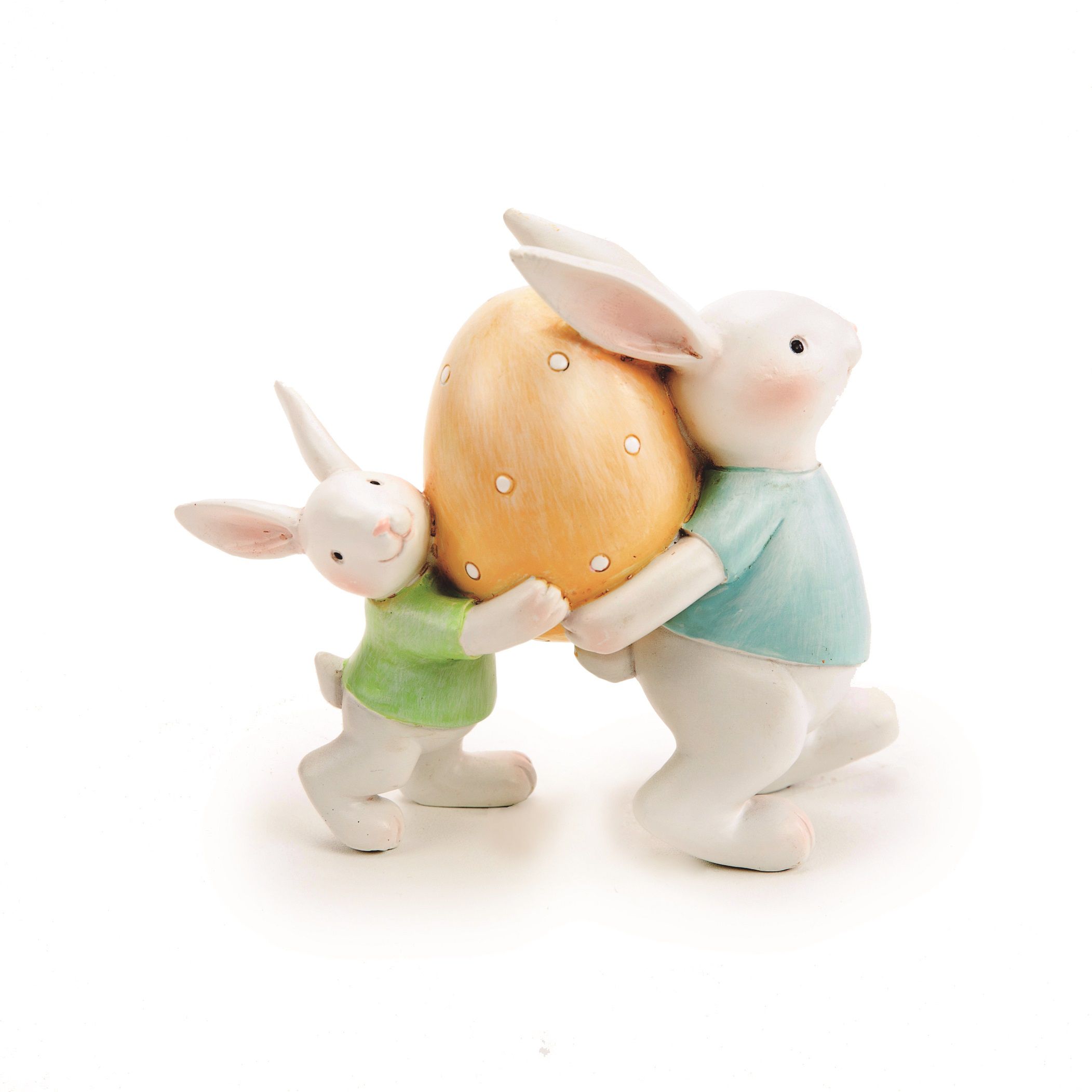 Coelho Decorativo de Resinacom Filhote Carregando Ovo - Coleção Color Baby - Páscoa Cromus - CCS Decorações e Embalagens