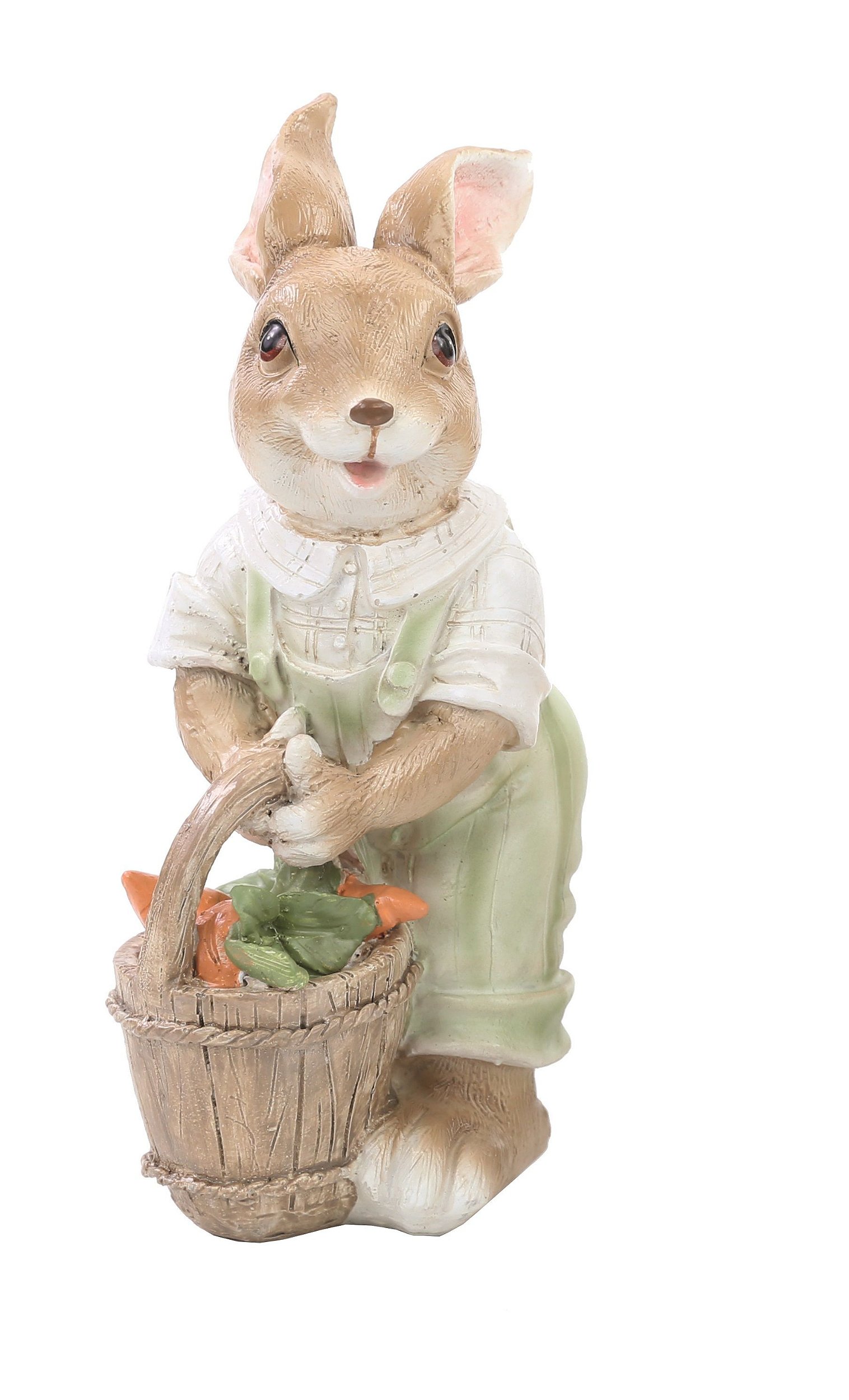 Coelho Decorativo de Resina Com jardineira Verde e Balde de Cenouras - Coleção Ternura - Páscoa Cromus - CCS Decorações e Embalagens