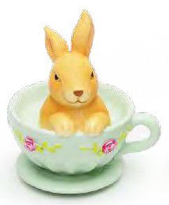 Coelho de Resina Dentro da Xicara Verde de Flores - Coleção Ternura - Páscoa Cromus - CCS Decorações e Embalagens