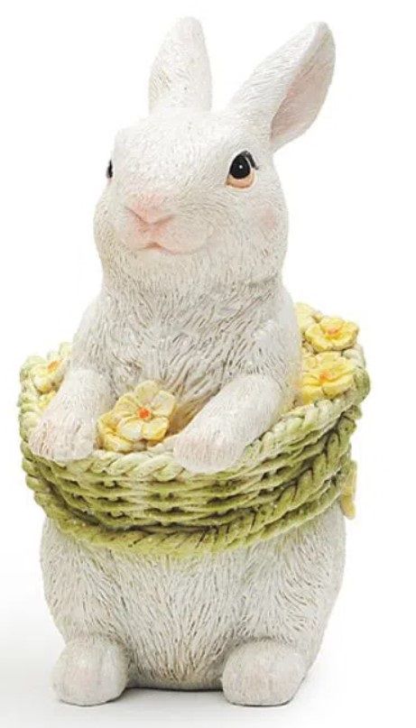 Coelho Decorativo de Resina Deitado com Cesta de Flores - Coleção Color Baby - Páscoa Cromus