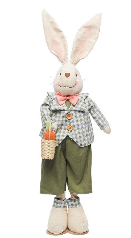 Coelho de Tecido em Pé com Paletó Xadrez Segurando Cesta - Cromus - CCS Decorações e Embalagens