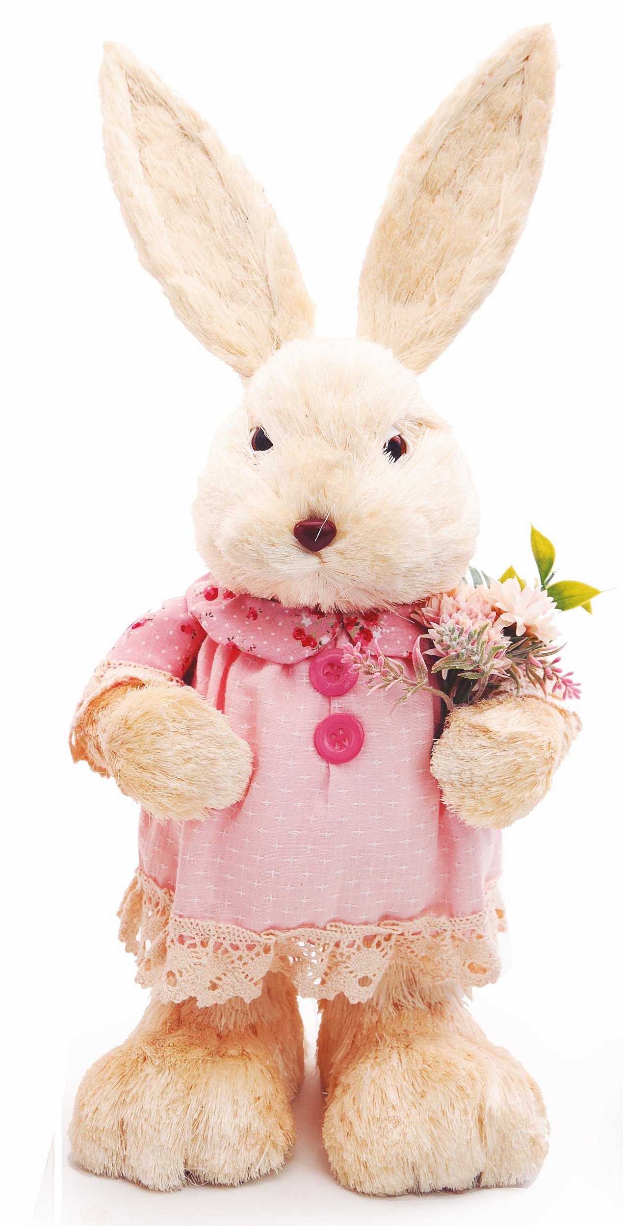 Coelha de Palha Creme em Pé com Maço de Flores na Mão e Vestido - Coleção Green Gables - Cromus - CCS Decorações e Embalagens