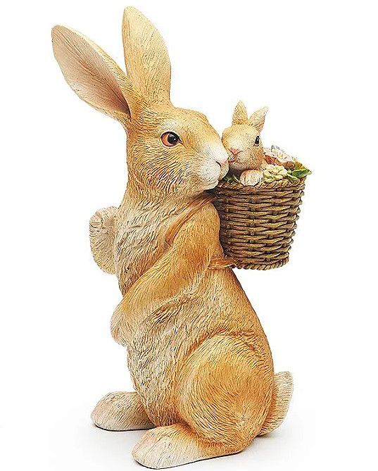 Coelho Decorativo de Resina Marrom com Cesta de Flores nas Costas e Filhote Dentro - Coleção Primavera - Páscoa Cromus - CCS Decorações e Embalagens