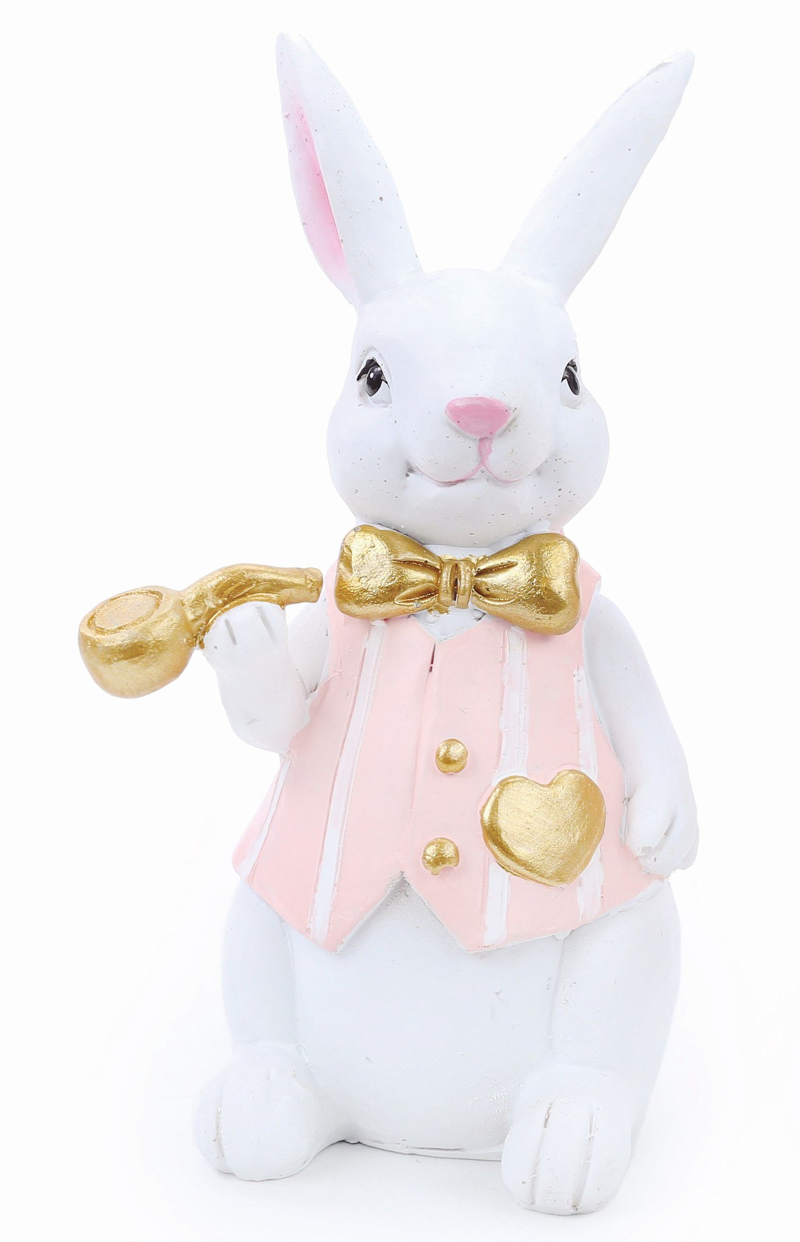 Coelho Decorativo de Resina com Colete Rosa e Dourado Segurando Cachimbo - Coleção Petit Sweet - Páscoa Cromus - CCS Decorações e Embalagens