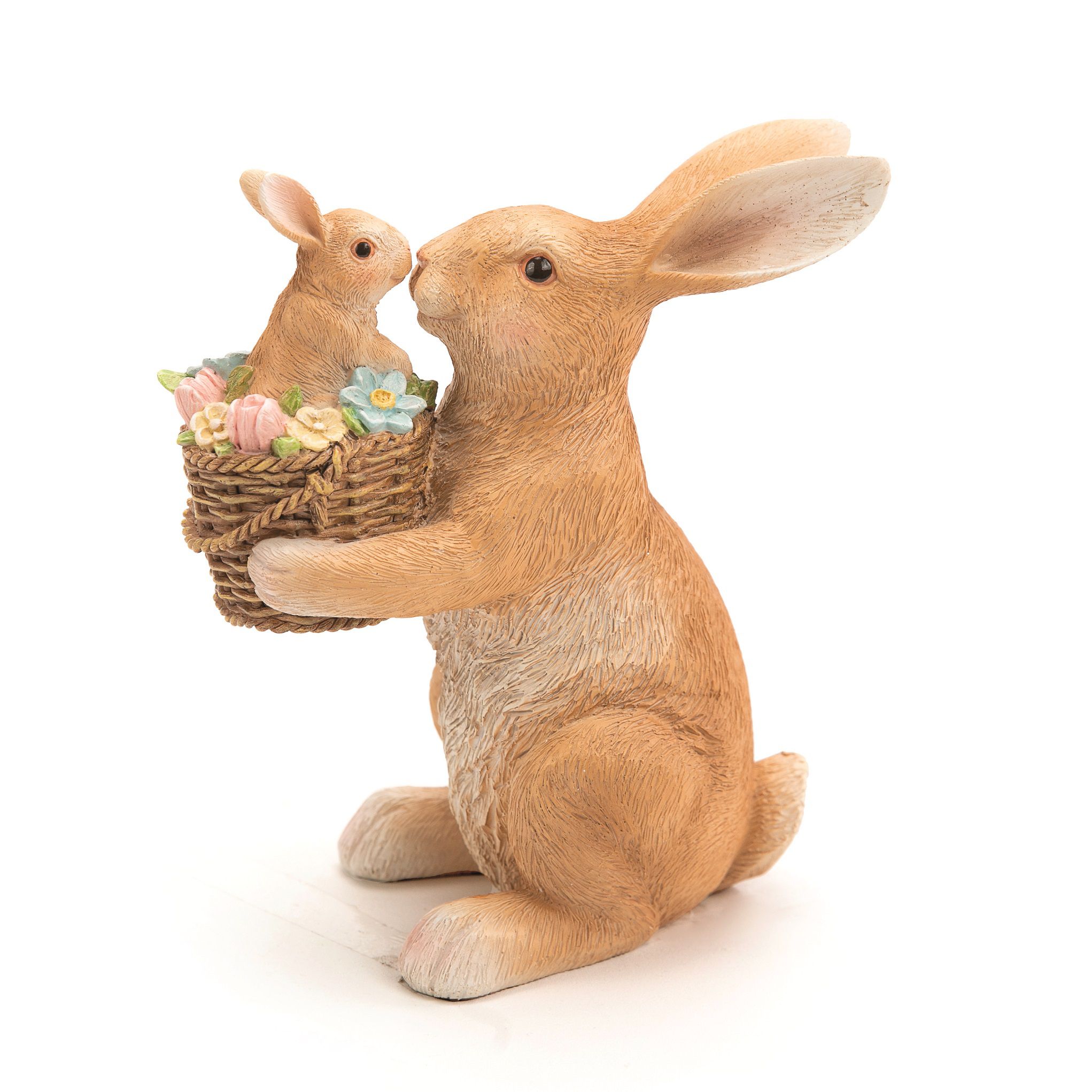 Coelha Decorativa de Resina com Filhote no Cesto de Flores - Coleção Ternura - Páscoa Cromus - CCS Decorações e Embalagens