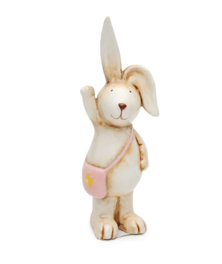 Coelho Cerâmica Usando Bolsa Marrom e Rosa - Cromus