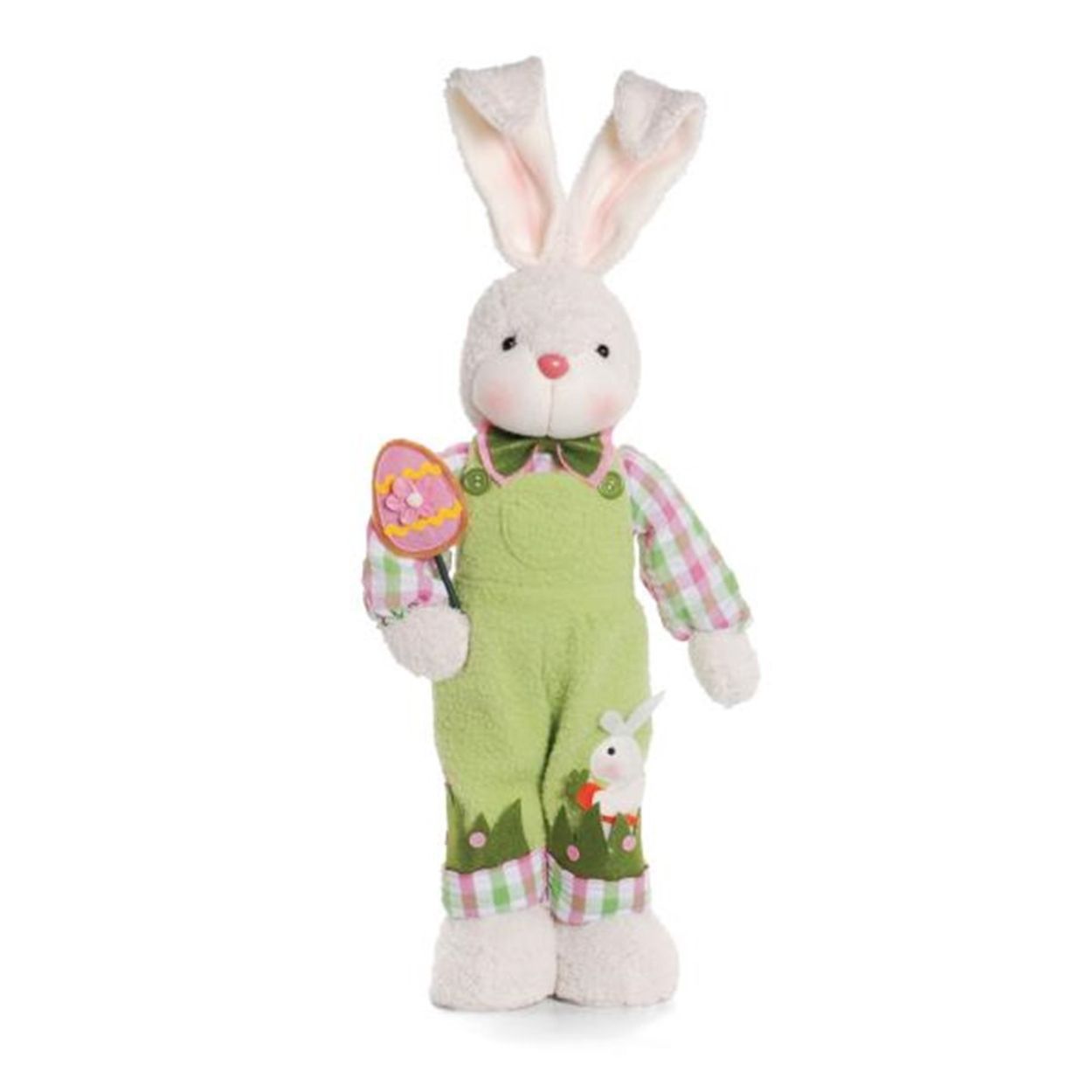 Coelho em Pé com Macacão Verde e Camisa Xadrez Verde e Rosa - Páscoa Cromus - CCS Decorações e Embalagens