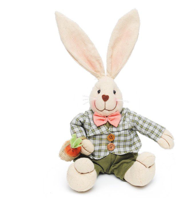 Coelho de Tecido Sentado com Cesta e Paletó Xadrez - Cromus - CCS Decorações e Embalagens