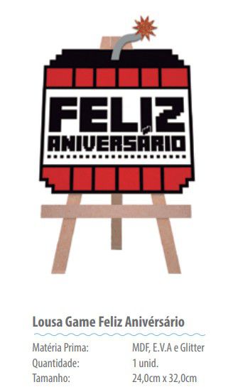 Decoração Enfeite de Mesa em MDF Cavalete Lousa Feliz Aniversário Game - Festa Game - Grintoy