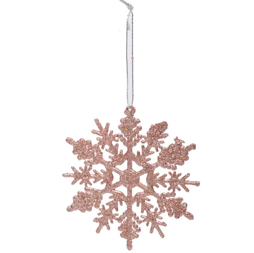 Enfeite Pendurar Floco de Neve com Glitter Rosê 1 Unidade - Cromus Natal - CCS Decorações e Embalagens