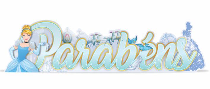 Enfeite Decorativo Impresso de E.V.A Parabéns Cinderela - Festa Cinderela - Princesas Disney - Piffer