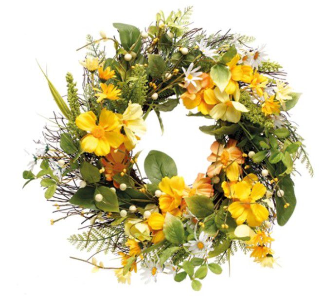 Guirlanda De Páscoa de Cipó com Margaridas e Galhos - Coleção Fondant - Páscoa Cromus - CCS Decorações e Embalagens