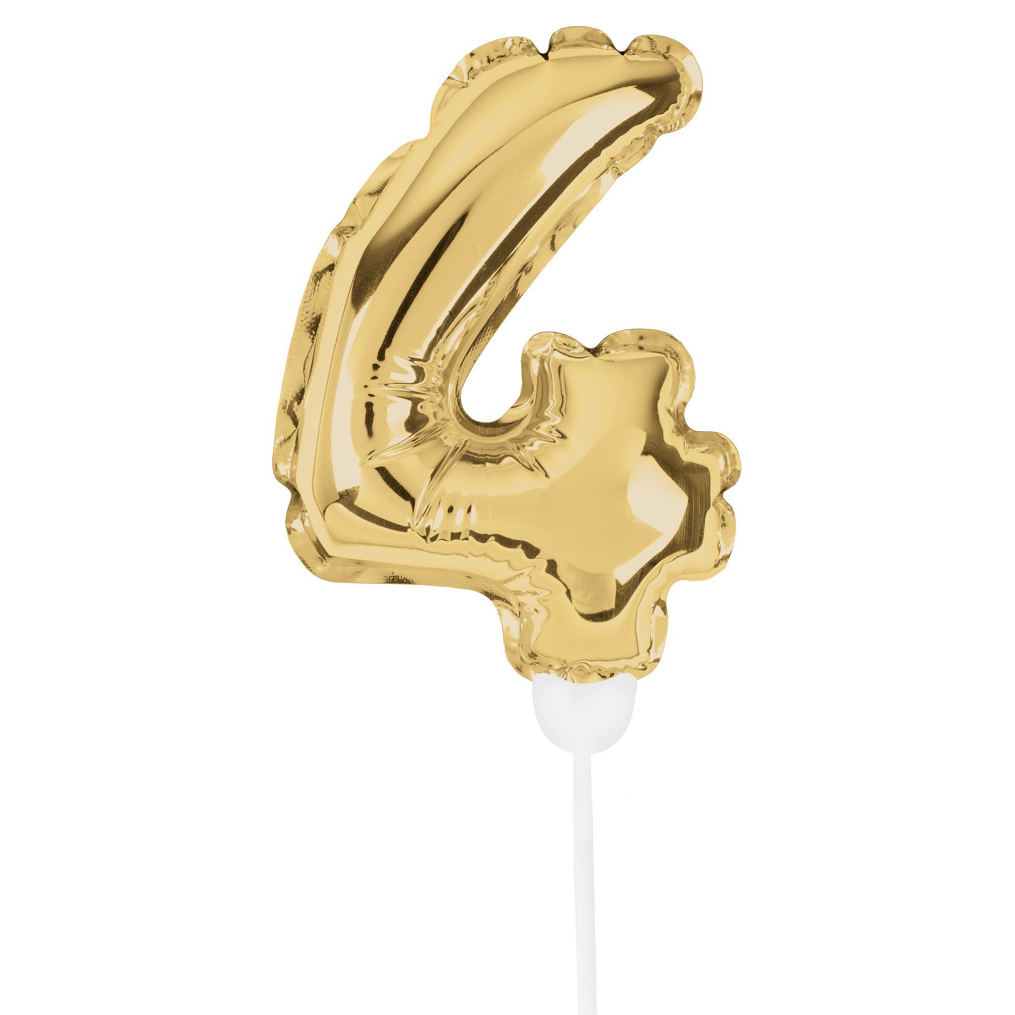 Mini Balão Auto Inflável 19cm Ouro Numero 4 - Ballon Cake - Ref 29002736 Cromus
