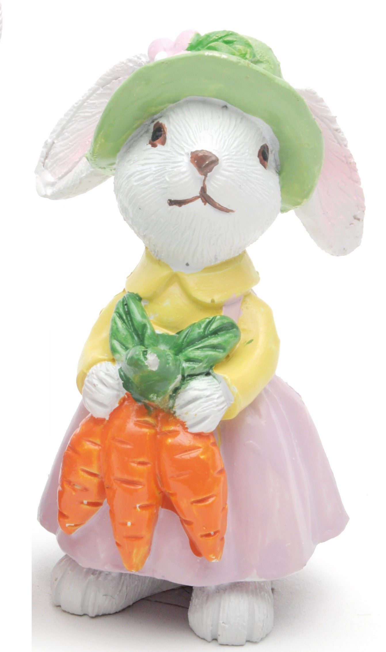 Mini Coelha Decorativa de Resina com Chapéu e Vestido, Segurando Cenouras - Coleção Petit Sweet - Páscoa Cromus - CCS Decorações e Embalagens