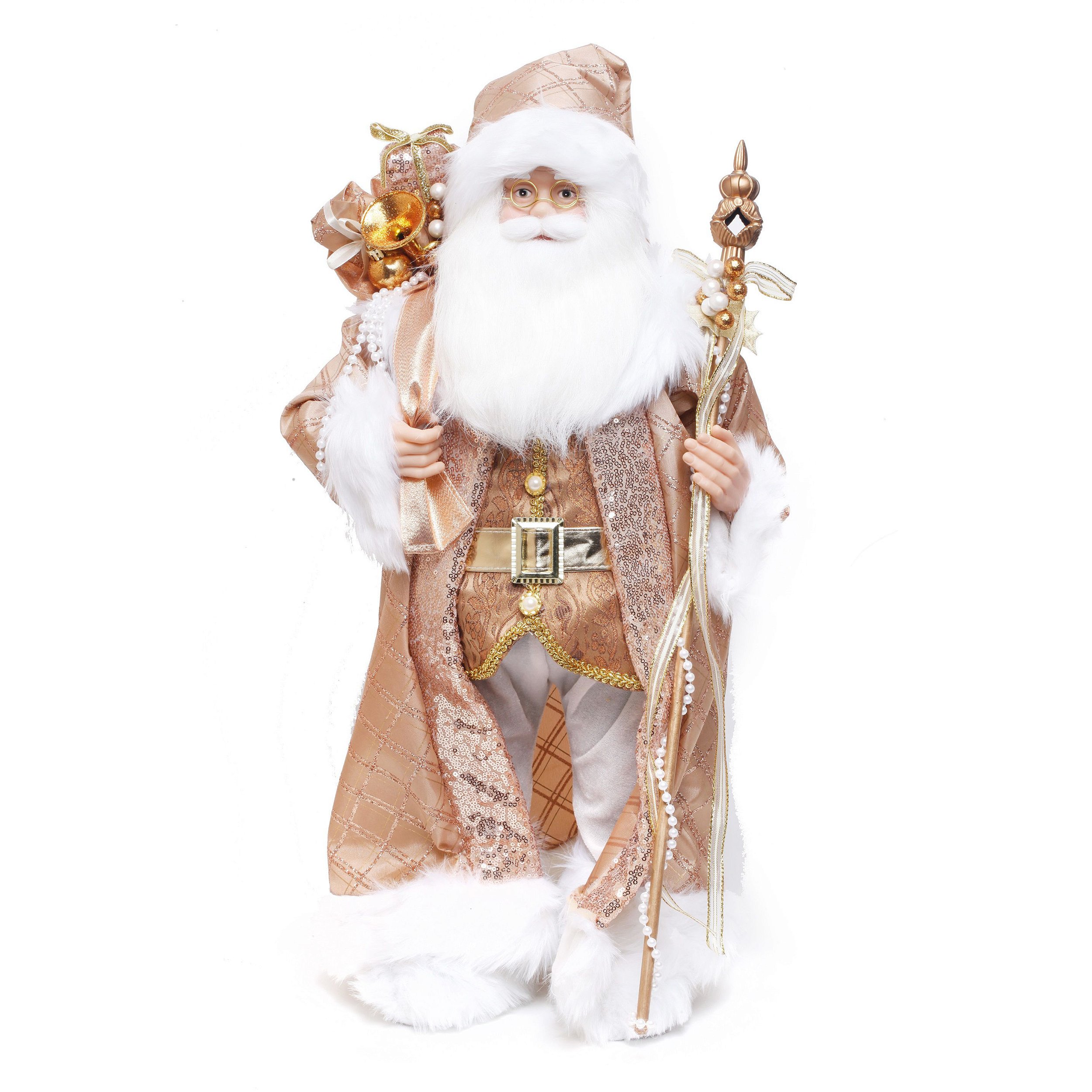 Bonecos Papai Noel em Pé com Casaco Rosê, detalhes em Paetê e Perolas, Calça Branca, Bordas de Pelúcia - Cromus Natal - CCS DecoraçÕes e Embalagens