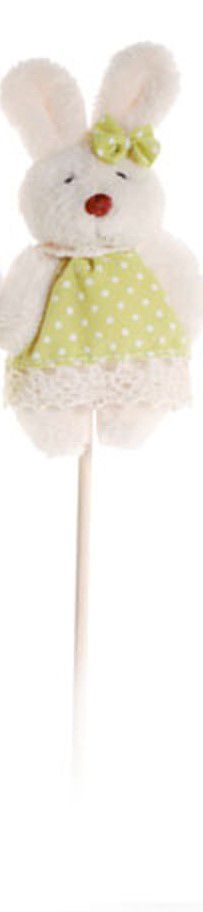 Pick Coelha de Pelúcia no Palito Vestido Poá Verde - Ref 1420291F Páscoa Cromus