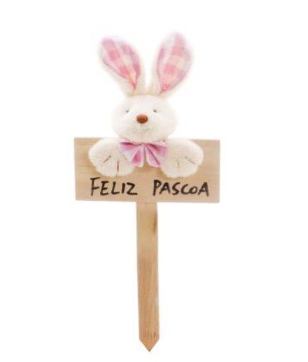 Plaquinha Feliz Páscoa Coelho Xadrez Rosa Claro - Páscoa Cromus - CCS Decorações e Embalagens