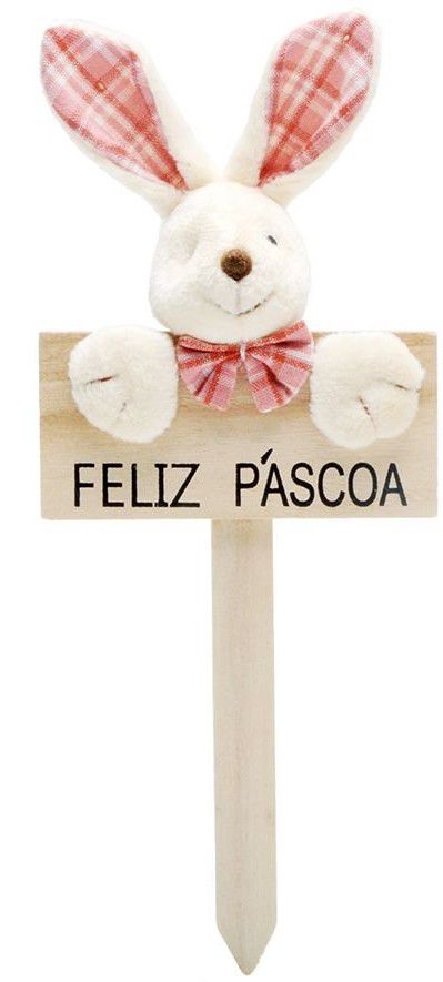 Plaquinha Feliz Páscoa Coelho Xadrez Rosa Claro - Páscoa Cromus - CCS Decorações e Embalagens