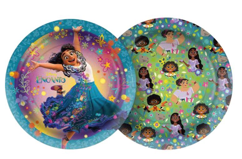 Com cores vivas e que combinam com o tema o prato Festa Encanto Disney é uma ótima opção para finalizar suas decorações.