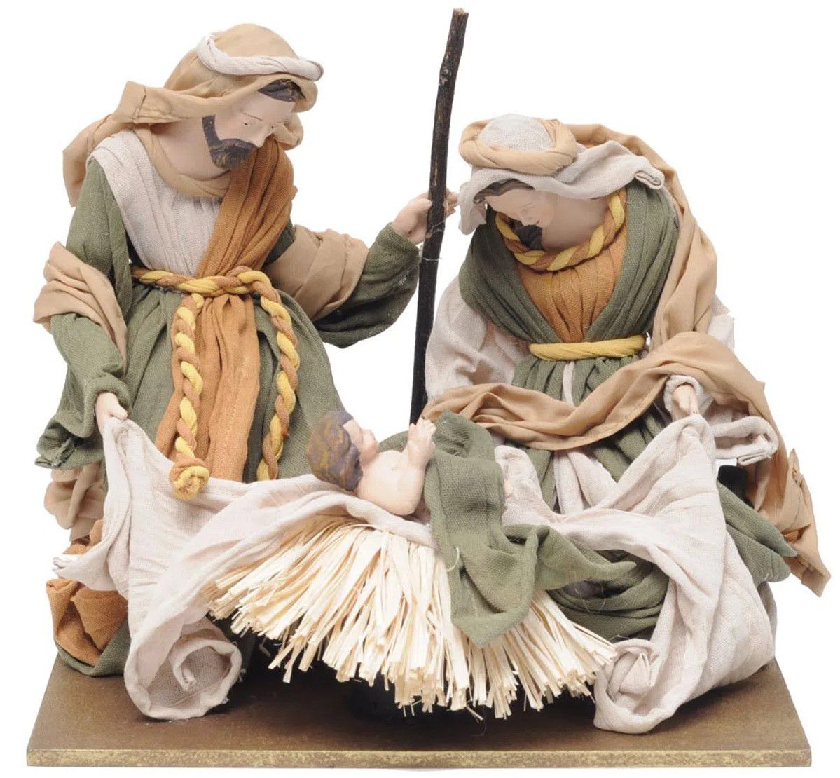 Sagrada Familia de Resina e Tecido Menino Jesus na Manjedoura - Cromus Natal