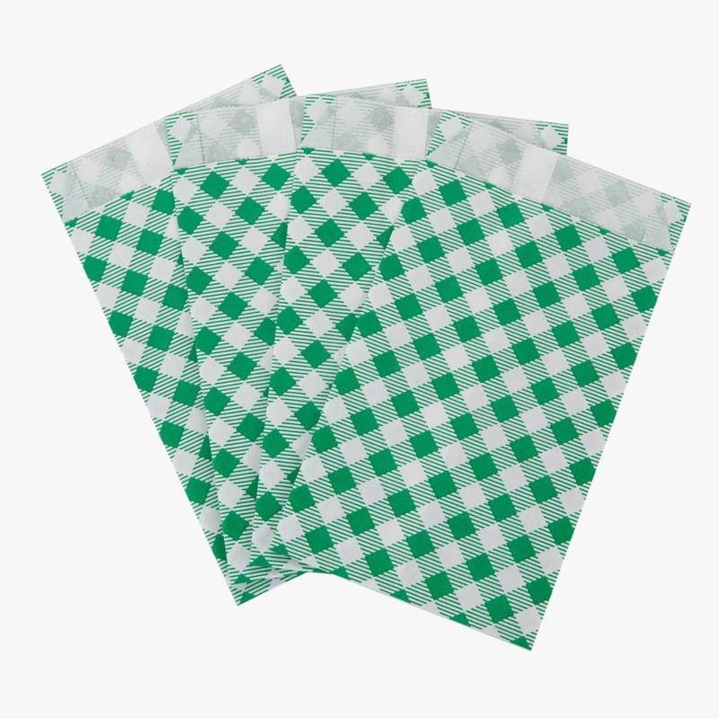 Saco de Papel Xadrez Verde e Branco 14x8cm com 50 Un - Silver