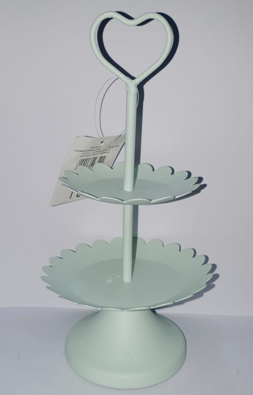 Suporte para doces dois andares, de metal, com acabamento nas bordas de ondas - Cromus
