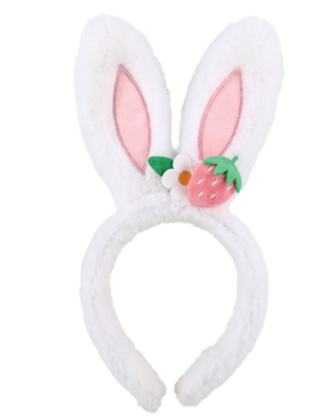 Tiara de Pelúcia Orelhas de Coelho com Aplique Morango e Flores - Cromus - CCS Decorações e Embalagens